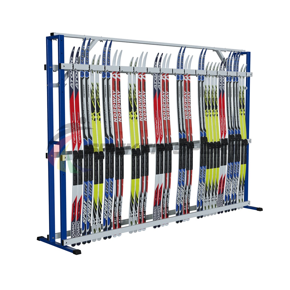 Предназначена для хранения беговых лыж и лыжных палок в спортивных учреждениях, предприятиях и т.д., с возможностью регулировки по высоте, для разных ростовок лыж.